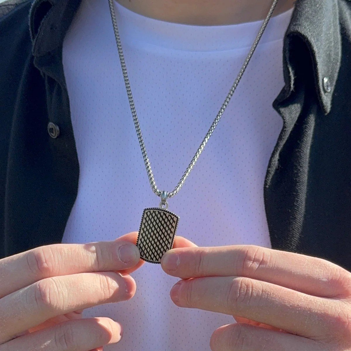 Pánsky štýlový náhrdelník Frank 1967 s príveskom s medailónom je nadčasovým kúskom s vintage šarmom. Retiazka s dĺžkou 60 cm a hrúbkou 3 mm slúži ako dokonalý základ pre výrazný prívesok s medailónom, ktorý meria 20 mm na šírku a 30 mm na výšku. Medailón ponúka vnútorný priestor 23 x 15 mm, ideálny na uloženie malých osobných predmetov!
