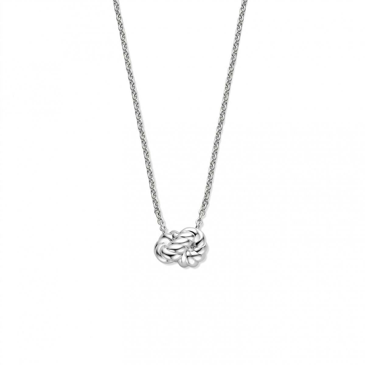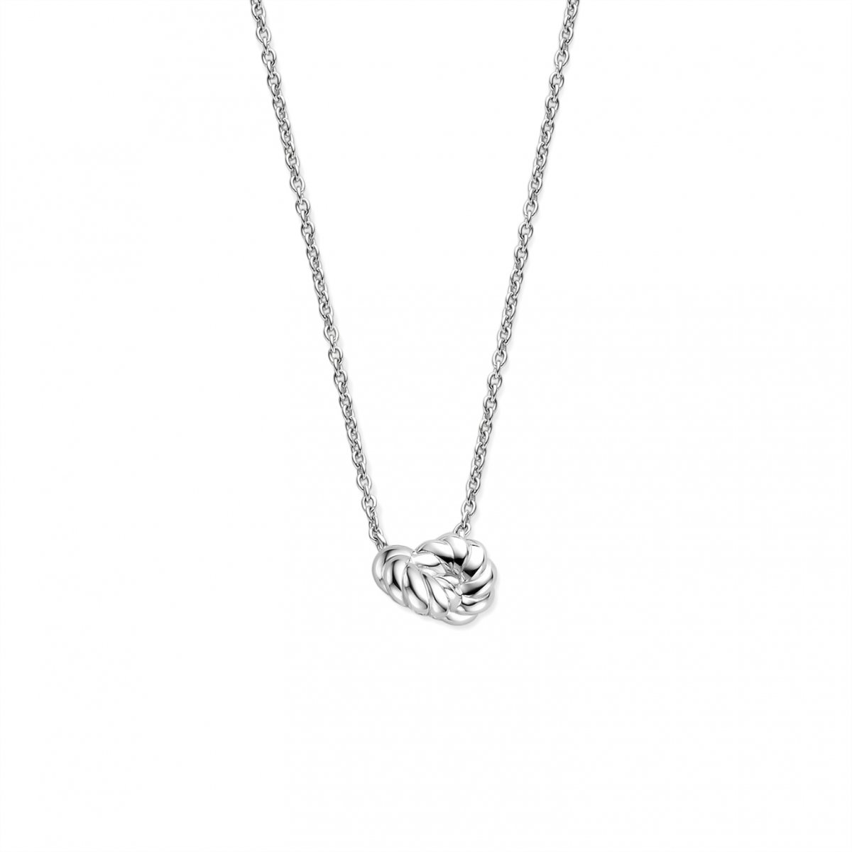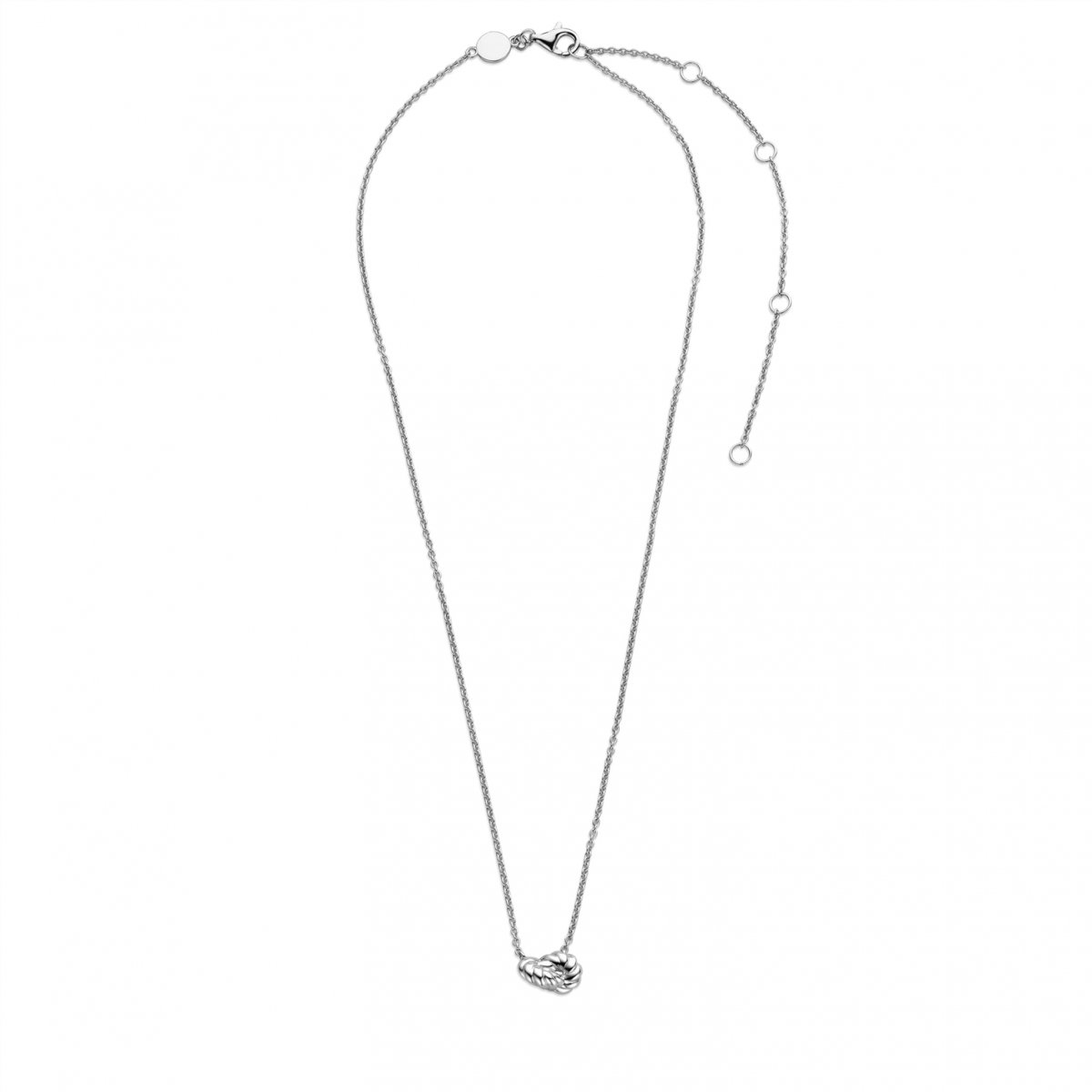 Strieborný náhrdelník TI SENTO obsahuje dva prepletené prstene s krútenou štruktúrou. Náhrdelník je vyrobený zo striebra rýdzosti 925 a je potiahnutý hrubou vrstvou ródia, ktorá ho chráni a udržuje ho žiarivý. Jeho extra bezpečný zámok je navrhnutý tak, aby mal tento kúsok stále pri sebe. Dĺžka tohto náhrdelníka je nastaviteľná, jeho rozsah je 38-48cm. Veľkosť prívesku je 0,5 x 0,8 cm.
