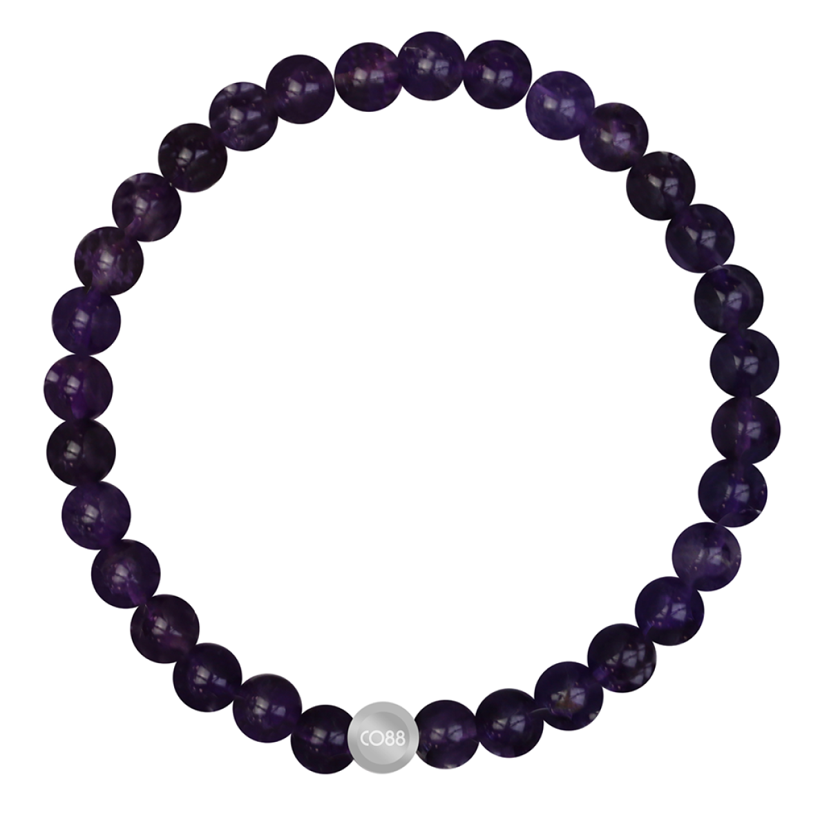 Dámsky náramok CO88 na gumičke krásne zdobený s ametystom a oceľovou guličkou. Veľkosť kameňa je 0,6 cm.