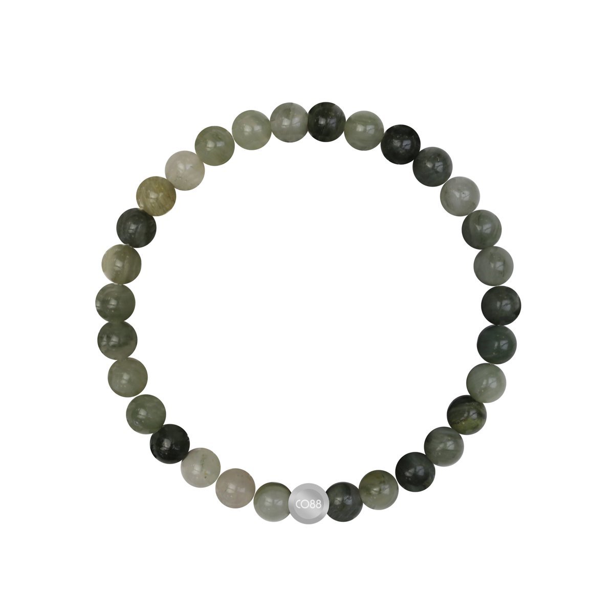 Dámsky náramok CO88 na gumičke krásne zdobený zeleným prírodným kameňom a oceľovou guličkou. Veľkosť kameňa je 0,6 cm.