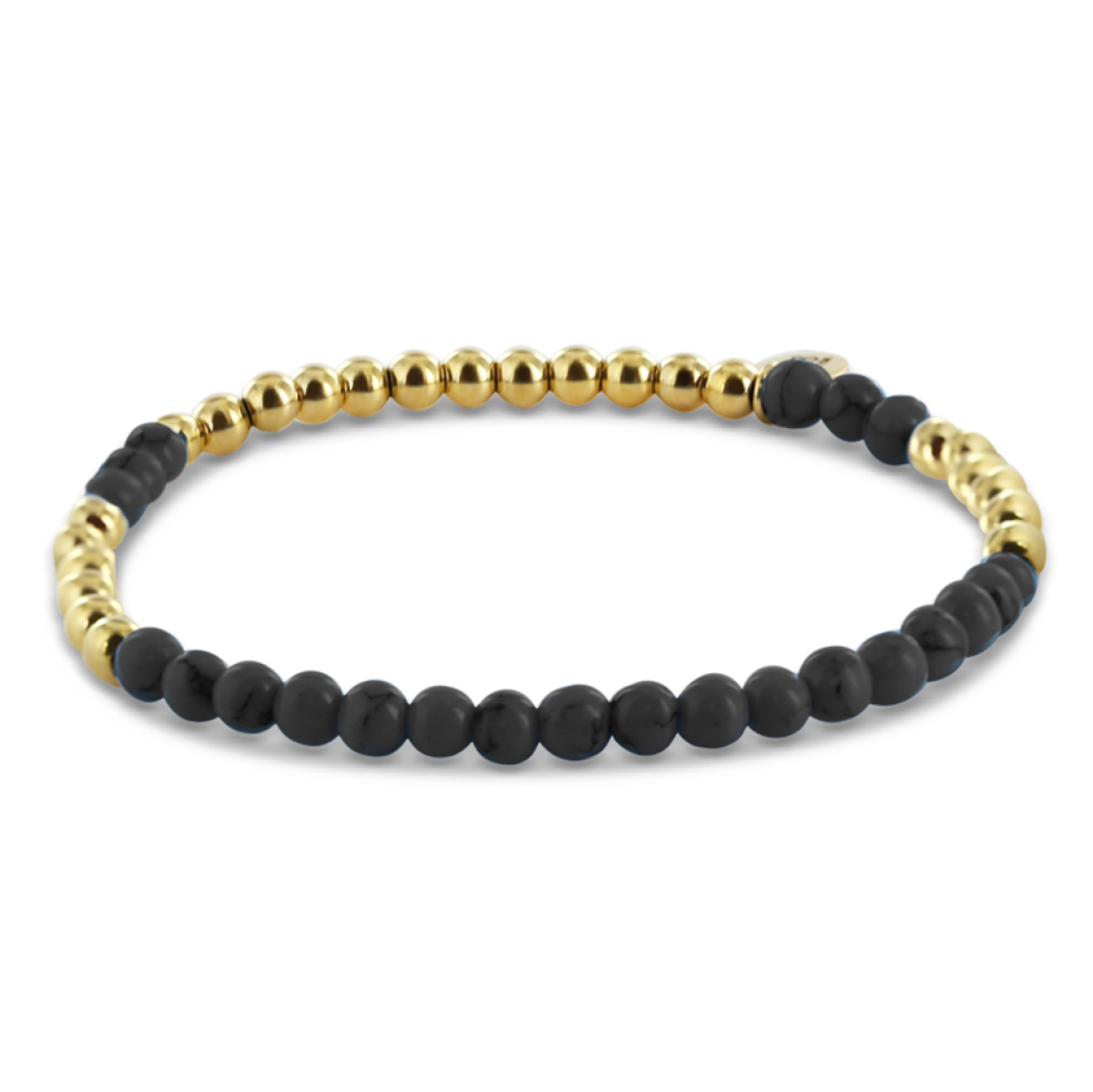 Dámsky korálkový náramok CO88 s jaspisom a pozlátenými oceľovými guličkami. Veľkosť kameňa 0,4 cm. Dĺžka náramku je cca 17 cm.