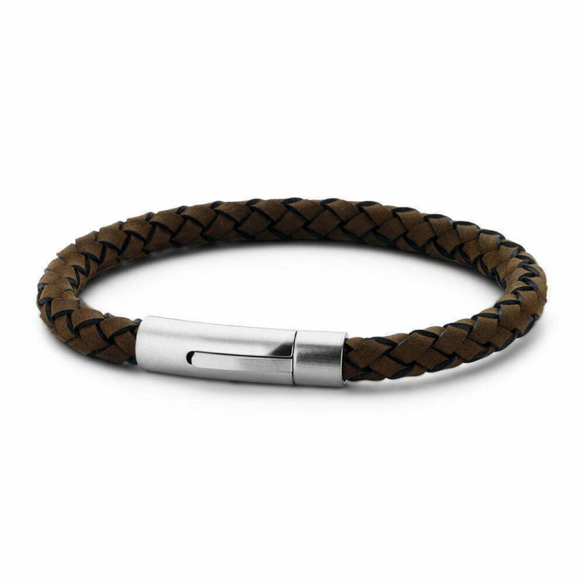 Jednoduchý 21 cm okrúhly zapletaný náramok z kvalitnej hnedej kože so zámkom na pánt z nehrdzavejúcej ocele. Dokonale sa kombinujú s akýmkoľvek oblečením alebo inými šperkami.