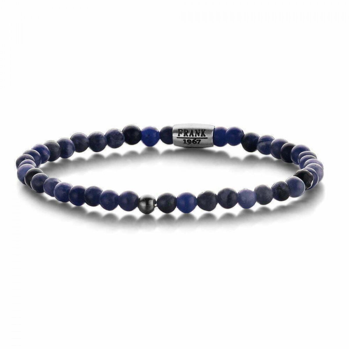 Pánsky elastický 20 cm náramok FRANK 1967 zdobený jemnými 4 mm korálkami z prírodného kameňa Sodalit a Hematit s uzáverom z nehrdzavejúcej ocele. Jeho veľkosť a neutrálne sfarbenie ho predurčujú na zladenie s inými náramkami.