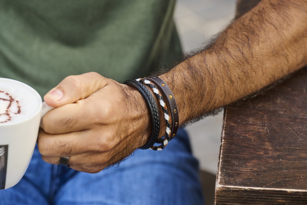Pánsky kožený náramok s korálkami Tigrie oko od značky Frank 1967. Tento náramok sa hodí ku každému outfitu. Ideálne na kombináciu s ostatnými šperkami Frank 1967. Dĺžka je 21 cm má odnímateľné predĺženie, vďaka čomu je možné ho upraviť na 20 cm, aby lepšie sedel.