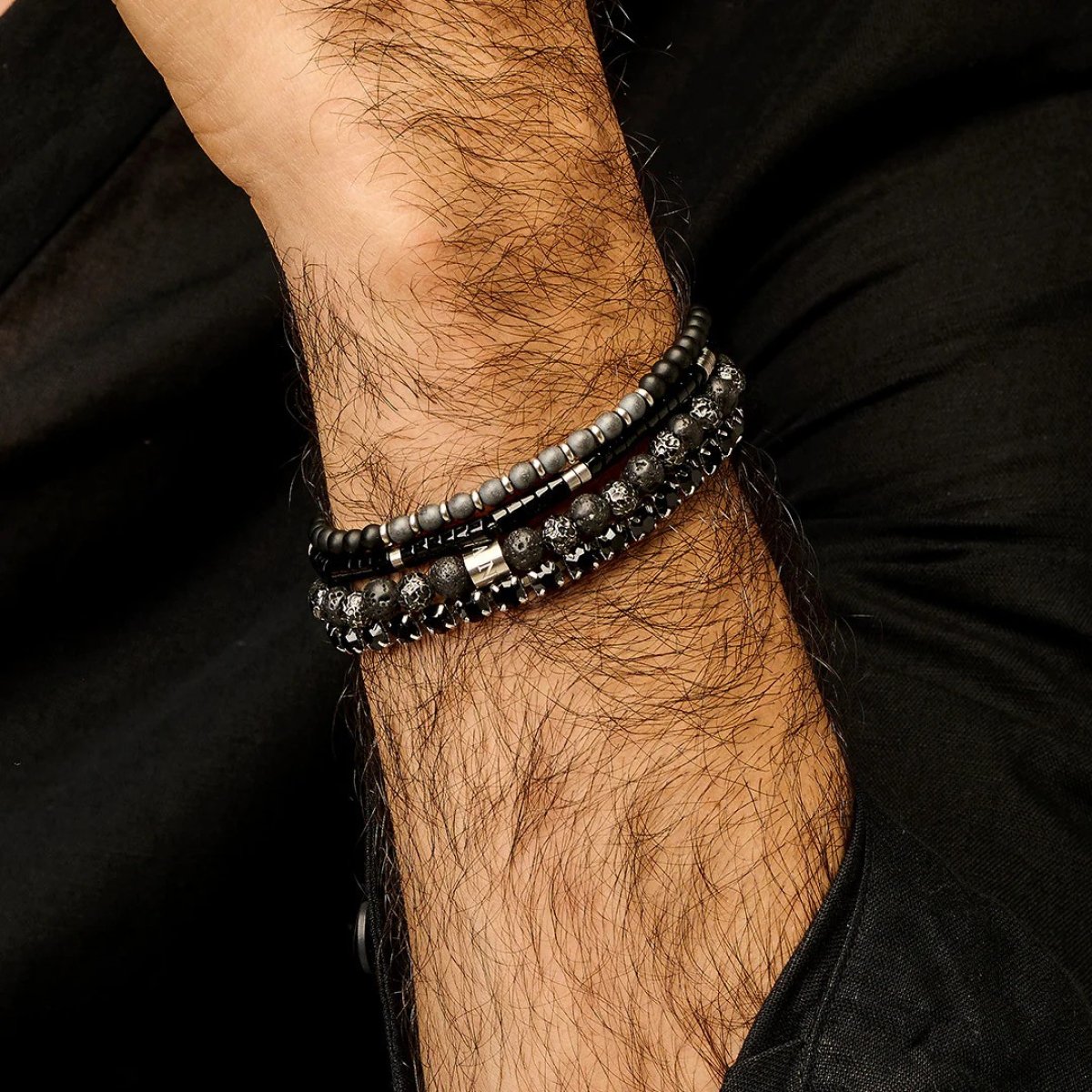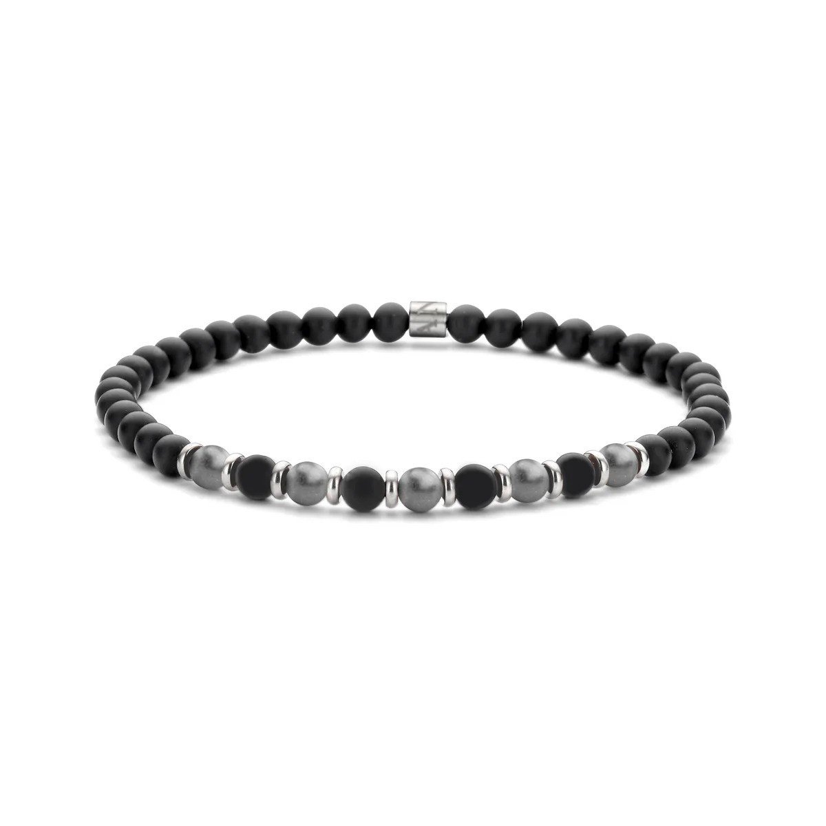 Pánsky náramok Frank 1967 so šedým hematitom a čiernym achátom s oceľovými prvkami od Frank 1967. Náramok je vyrobený z kvalitných prírodných kameňov a nerezovej ocele. Korálky z prírodného kameňa majú rozmer 4 mm. Vďaka jemnej veľkosti je šperk ideálny na kombinovanie s viacerými náramkami. Skombinujte tento náramok s inými šperkami alebo hodinkami Frank 1967 pre dokonalý vzhľad!
