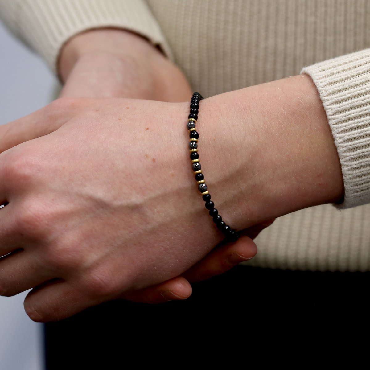 Pánsky náramok Frank 1967 z hematitu a achátu s oceľovými prvkami od Frank 1967. Náramok je vyrobený z kvalitných prírodných kameňov a nerezovej ocele. Korálky z prírodného kameňa majú rozmer 4 mm. Vďaka jemnej veľkosti je šperk ideálny na kombinovanie s viacerými náramkami. Skombinujte tento náramok s inými šperkami alebo hodinkami Frank 1967 pre dokonalý vzhľad!