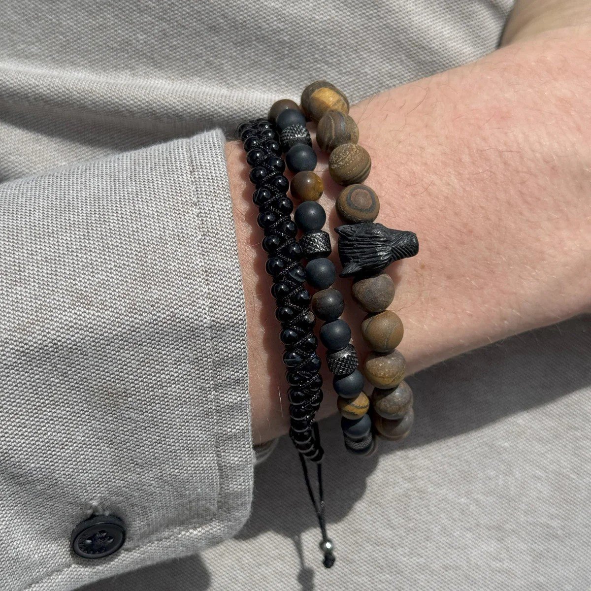 Pánsky kovaný náramok FRANK 1967 stelesňuje robustné spojenie 6 mm prírodných guľôčok ( achát, tigrie oko), z ktorých každý je vybraný pre svoj surový charakter a prirodzený magnetizmus. Náramok má dĺžku 18,5 cm, no ponúka roztiahnuteľnosť, čím zaisťuje pohodlné a pohodlné uchytenie na zápästí.