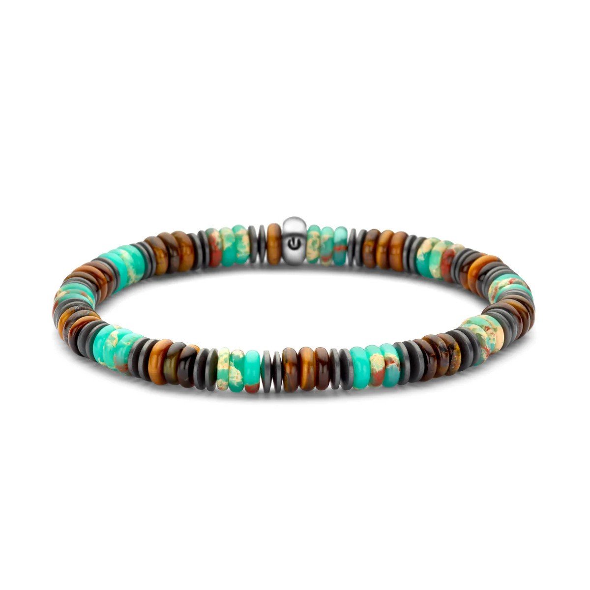 Pánsky klasický náramok FRANK 1967 s plochými korálkami predstavuje rafinovanú zmes textúr a plochých korálikov, čím vytvára elegantný a moderný vzhľad. Tento náramok s dĺžkou 18,5 cm ponúka pohodlné nosenie a dokonalú kombináciu prírodných kameňov ( hematit, tigrie oko ) a súčasného dizajnu. Ideálne pre moderného muža, ktorý hľadá jedinečný doplnok, ktorý bez problémov doplní akýkoľvek štýl.