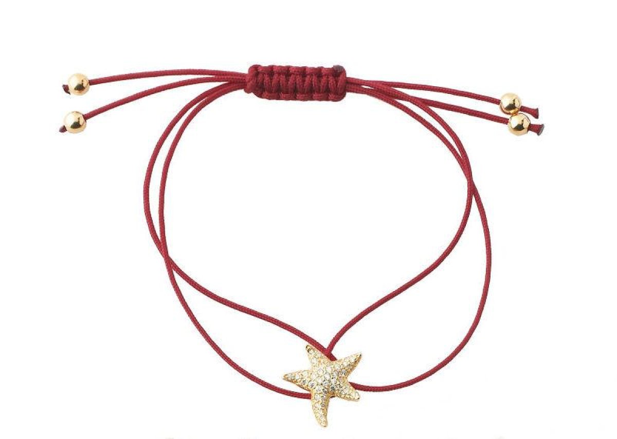 Náramok MISIS vyrobený z textilných šnúrok s príveskom v tvare pozlátenej hviezdice so zirkónmi . Náramok s možnosťou prispôsobenia veľkosti je vhodný pre ženy aj mladé slečny.
