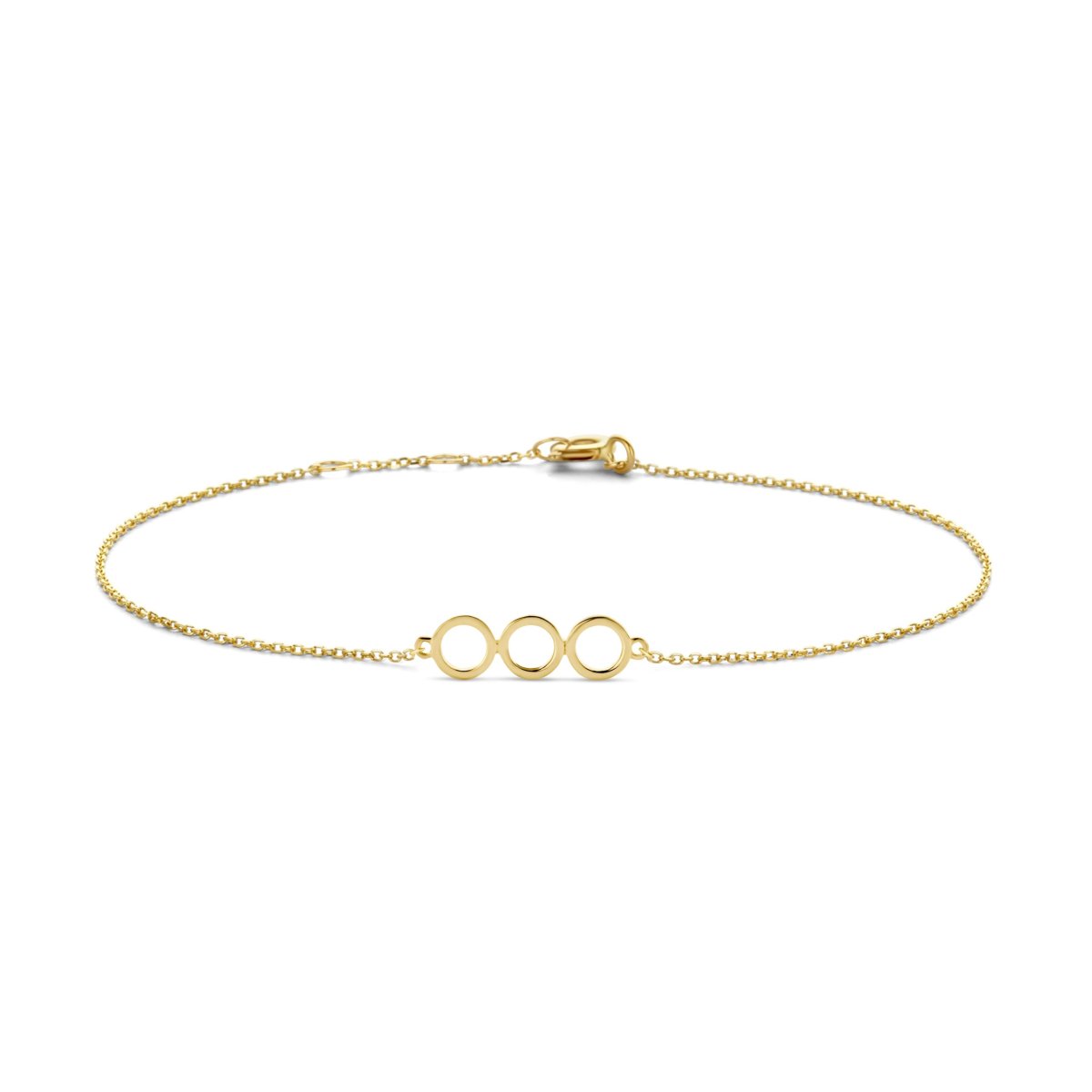 Náramok NEW BLING GOLD vyrobený zo 14K zlata obsahuje zlatú retiazku a prívesok s tromi prsteňovými retiazkami . Má dĺžku 16 cm a dá sa jednoducho nastaviť až na 2 cm (1+1 cm).