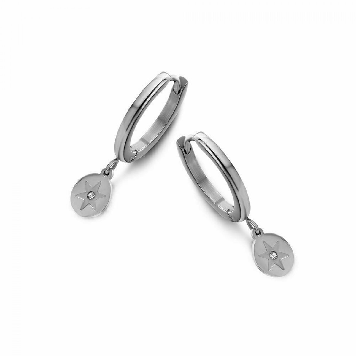 Náušnice CO88 sa vyznačujú jemne spracovanými obrúčkami z nehrdzavejúcej ocele, ktoré zdobia brilantný prívesok s hviezdnou rytinou a kameňom cz, ktorý vytvára očarujúci vzhľad. Doplnia akékoľvek oblečenie, aby dosiahli jedinečnú úroveň sofistikovanosti. Tieto úžasné šperky doplnia vaše najlepšie oblečenie tým, že dodajú vášmu konečnému vzhľadu extra šmrnc. Priemer kruhu je 1,5 cm, priemer prívesku 0,7 cm.