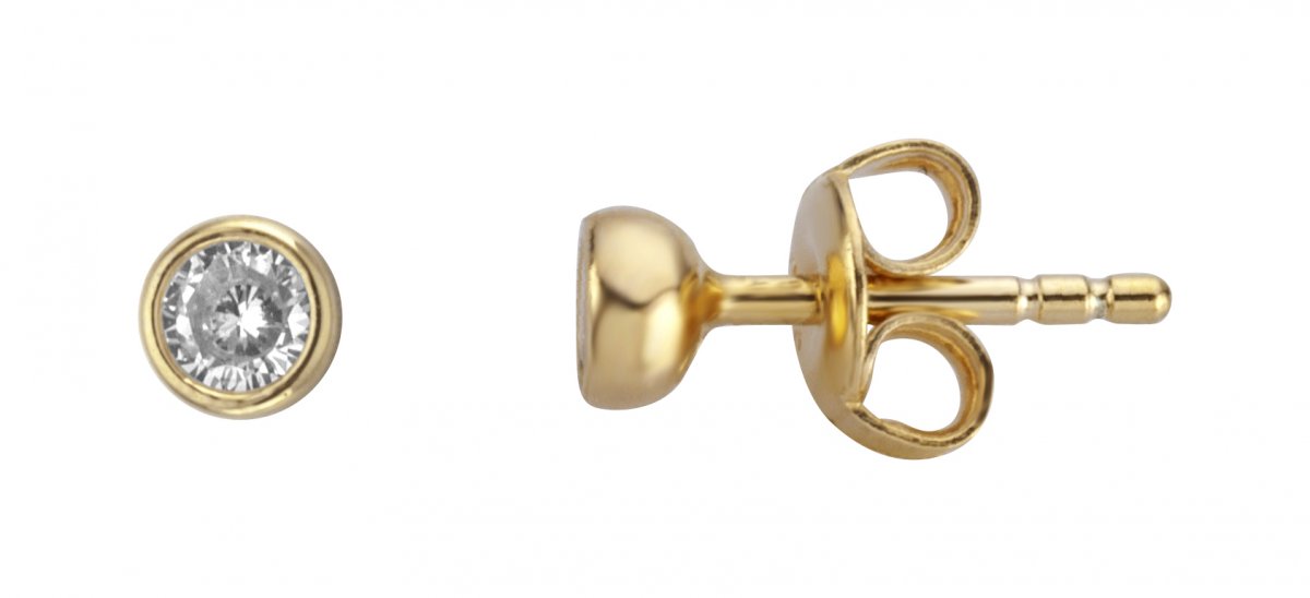 Jemné náušnice ESPRIT vyrobené zo striebra, pozlátené žltým zlatom, zdobené trblietavým zirkónom. Veľkosť náušníc je cca 0,6 cm.