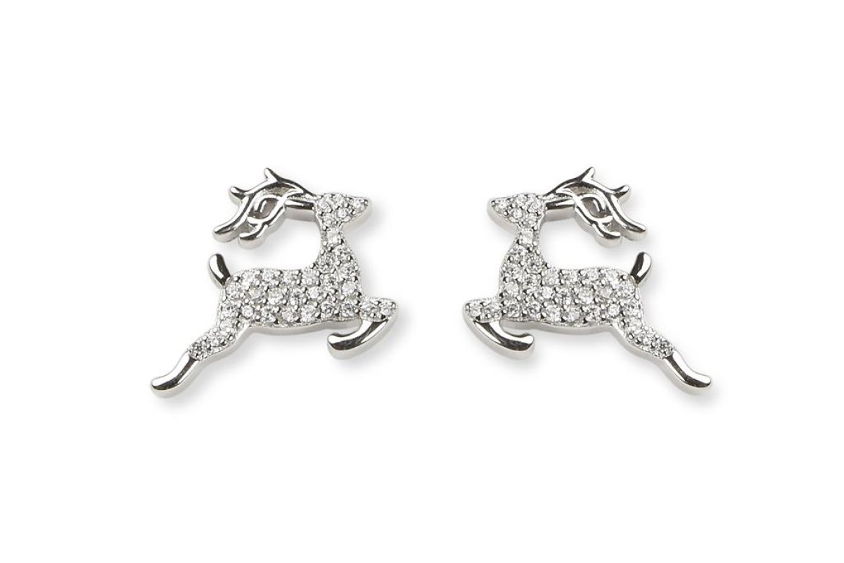 Náušnice MISIS vyrobené z ródiovaného striebra, v tvare sobíka, krásne zdobené trblietavými zirkónmi. Veľkosť náušníc je cca 1,5 cm.