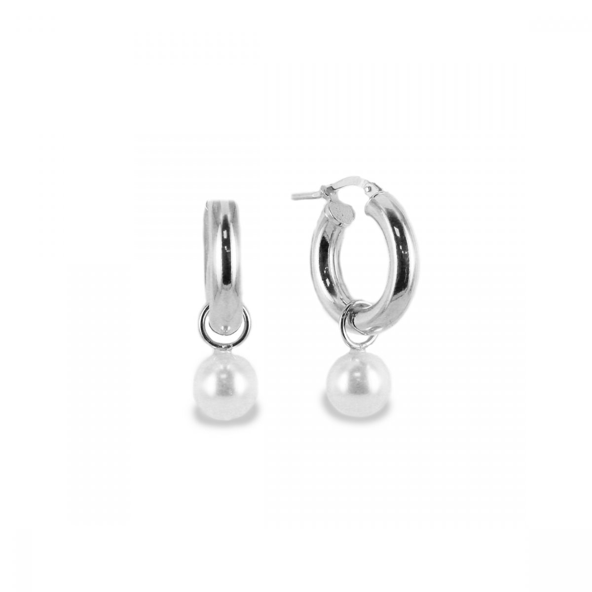 Elegantné kruhové náušnice NEW BLING vyrobené zo striebra, zdobené perrlami . Priemer náušníc je 1,8 cm, veľkosť perly 0,8 cm.