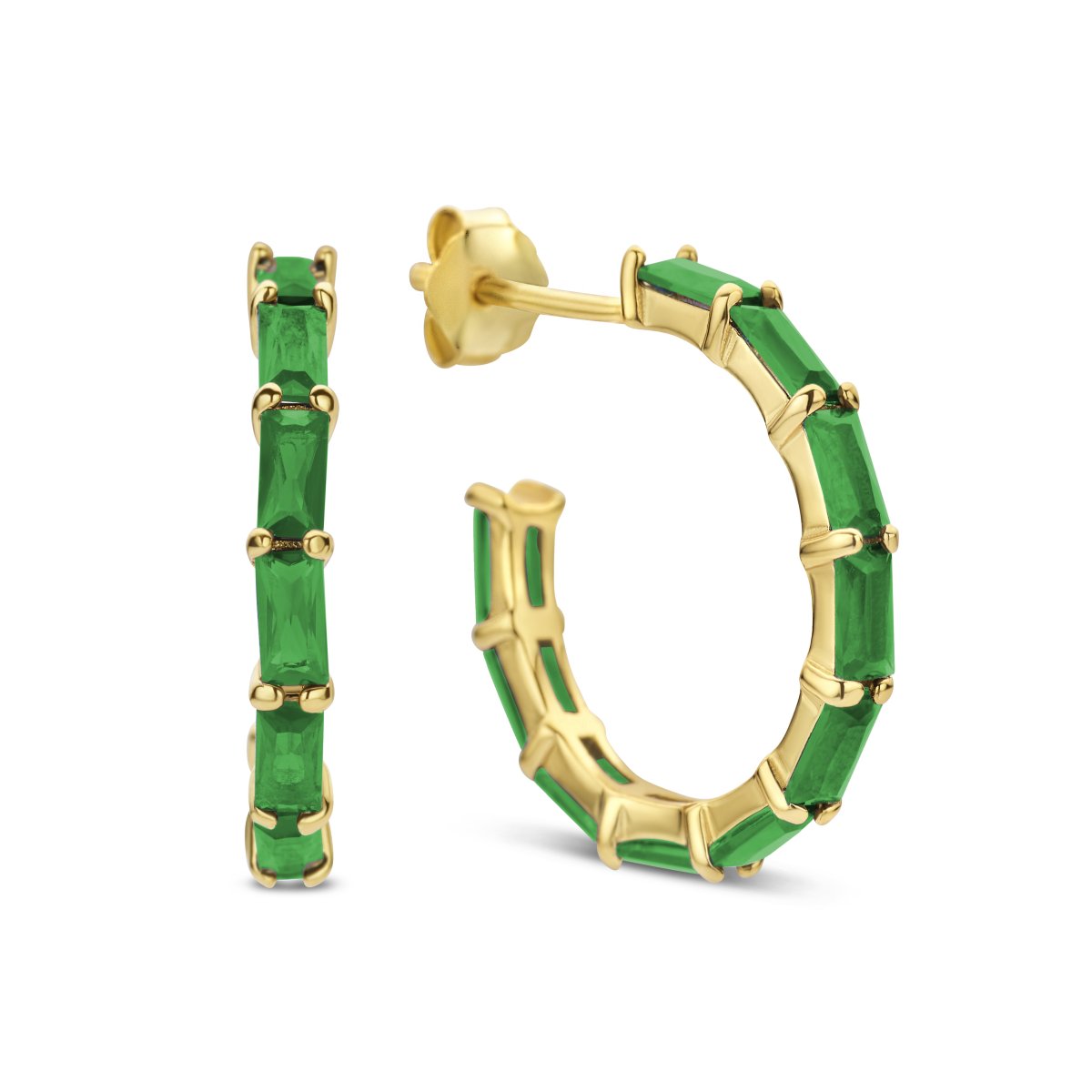 Dámske náušnice New Bling vyrobené zo striebra, pozlátené žltým zlatom, zdobené trblietavými zirkónmi. Veľkosť náušníc je cca 1,9 x 0,3 cm.