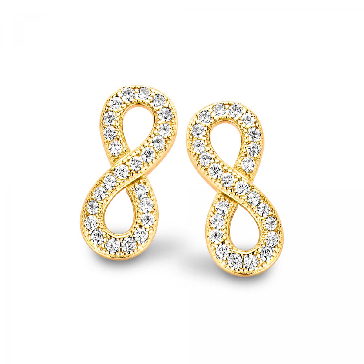 Strieborné náušnice NEW BLING, pozlátené žltým zlatom v tvare nekonečna, ktorých lesk a krása nikdy nezmizne. Náušnice sú na napichovanie.