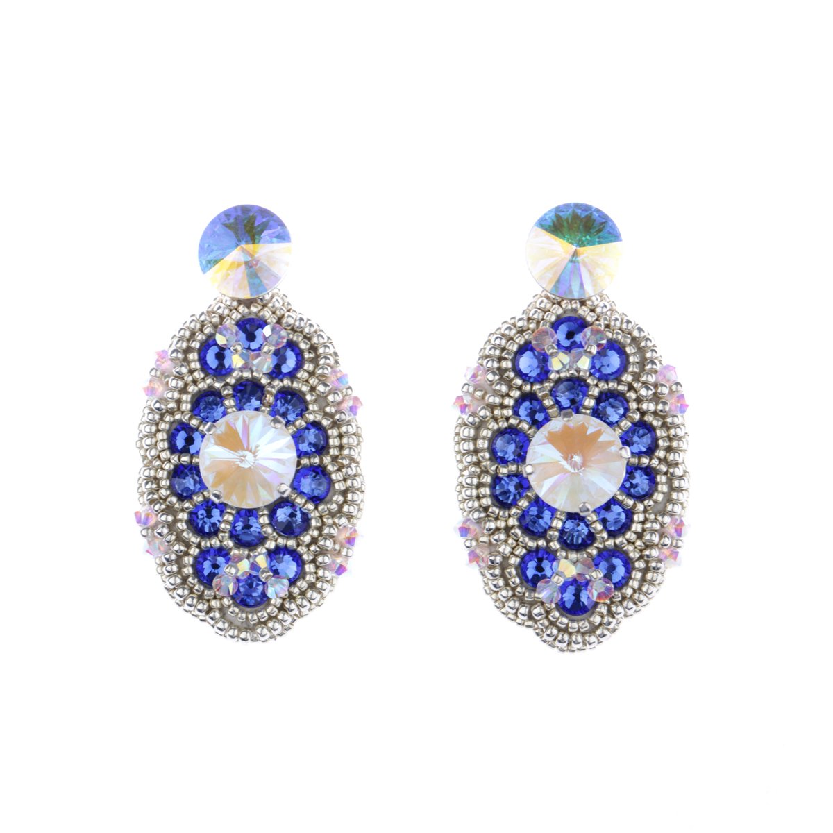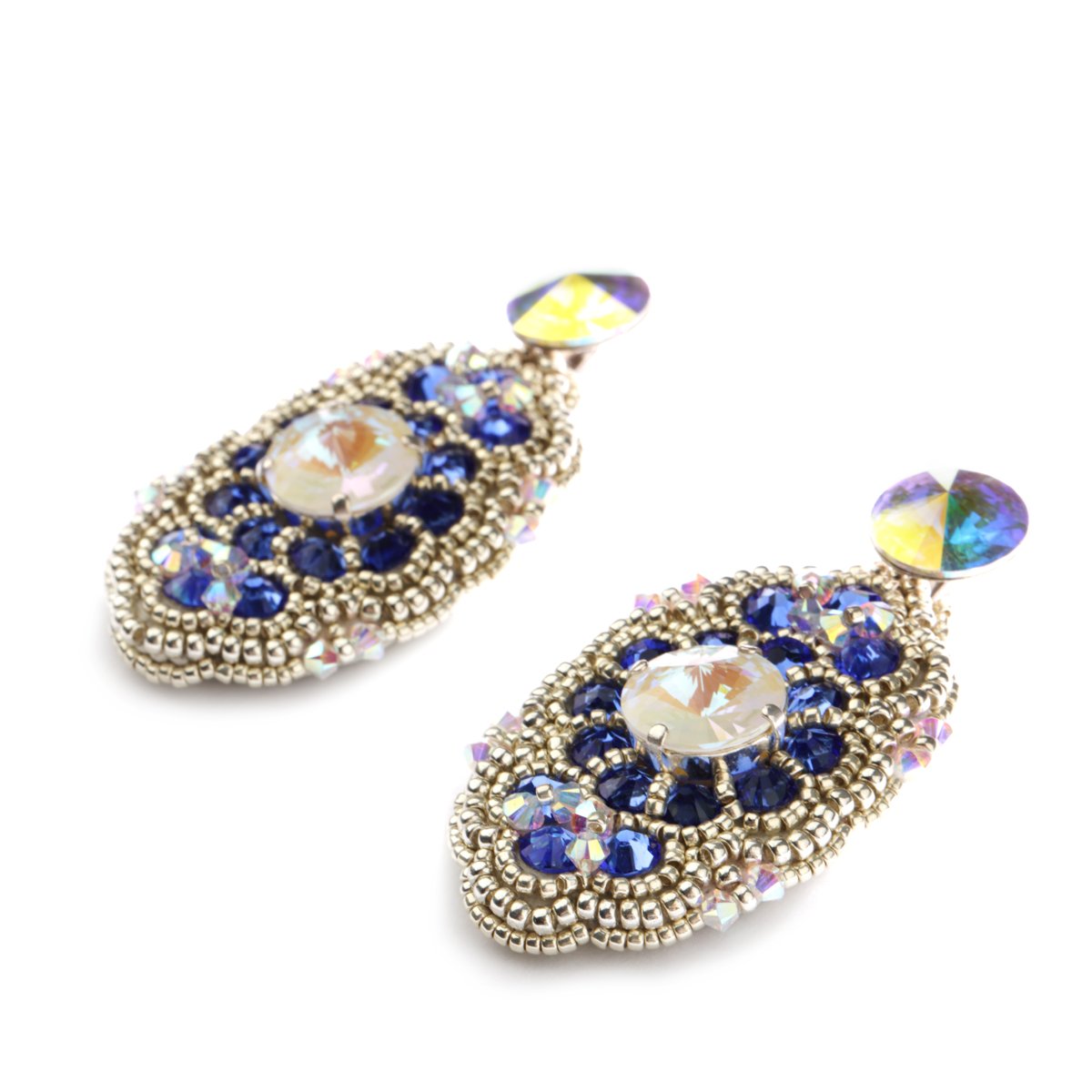 Náušnice sú vyrobené s nádhernými kryštálmi Swarovski, samostatne vyšívanými korálkami Miyuki a hmotnosťou menej ako 15 gramov.