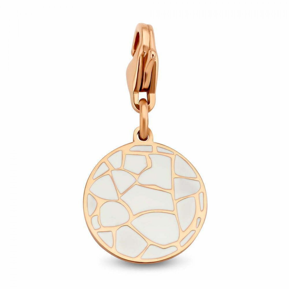 Kruhový prívesok CO88 je určite jedným z unikátnejších kúskov z kolekcie kúziel. Pri krásnej farebnej kombinácii ružovej a bielej olejové kvapky krásne vyniknú. Detailné škvrny takmer dodávajú vzhľad hadej kože. Veľkosť prívesku je 1,5 cm.
