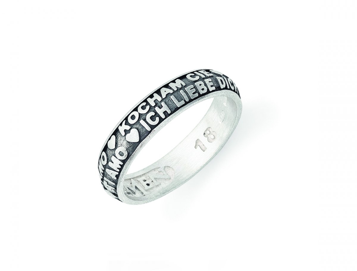 Prsteň AMEN vyrobený zo striebra s nápisom "Milujem ťa" vo všetkých jazykoch sveta.