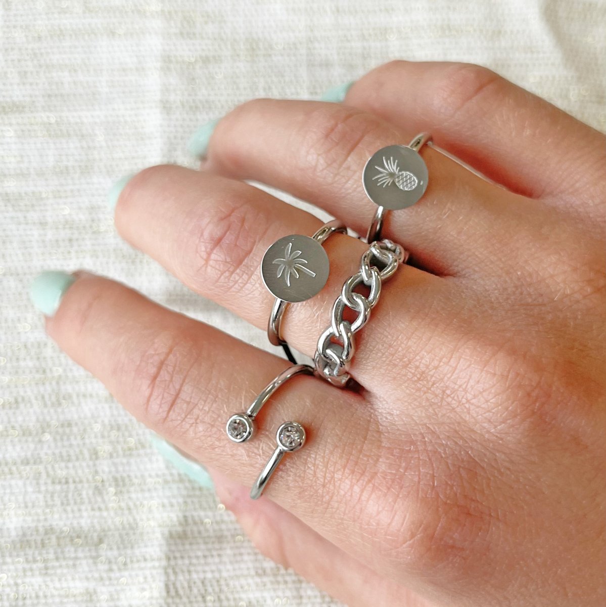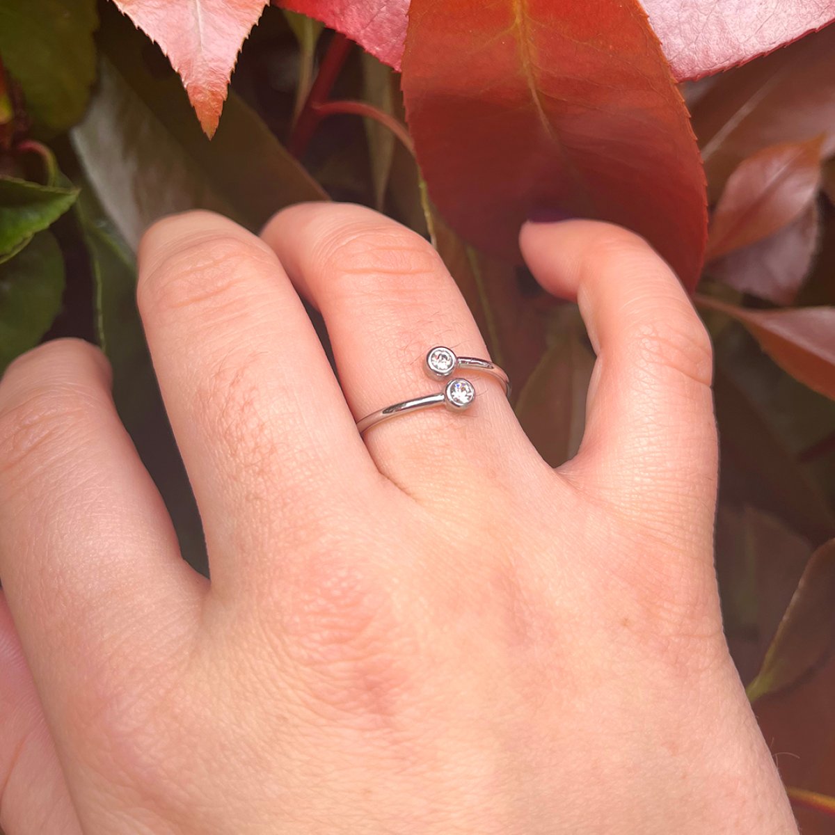 Dámsky prsteň CO88 vyrobený z nehrdzavejúcej ocele. Jeho veľkolepý dizajn s miernym rozštiepením obsahuje dva krásne detailné biele kubické zirkóny. Tento minimalistický a zároveň elegantný prsteň vám dodá jedinečný dotyk, ktorý hľadáte. Priemer zirkónu je 0,3 cm.
