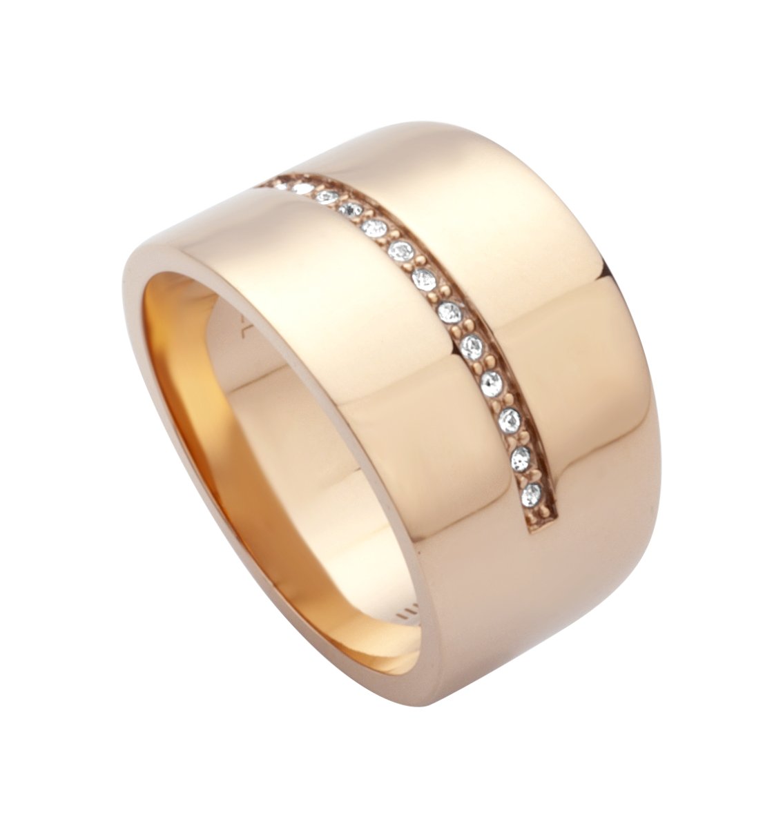 Dámsky prsteň ESPRIT vyrobený z chirurgickej ocele, pozlátený ružovým zlatom, krásne zdobený kryštálmi.