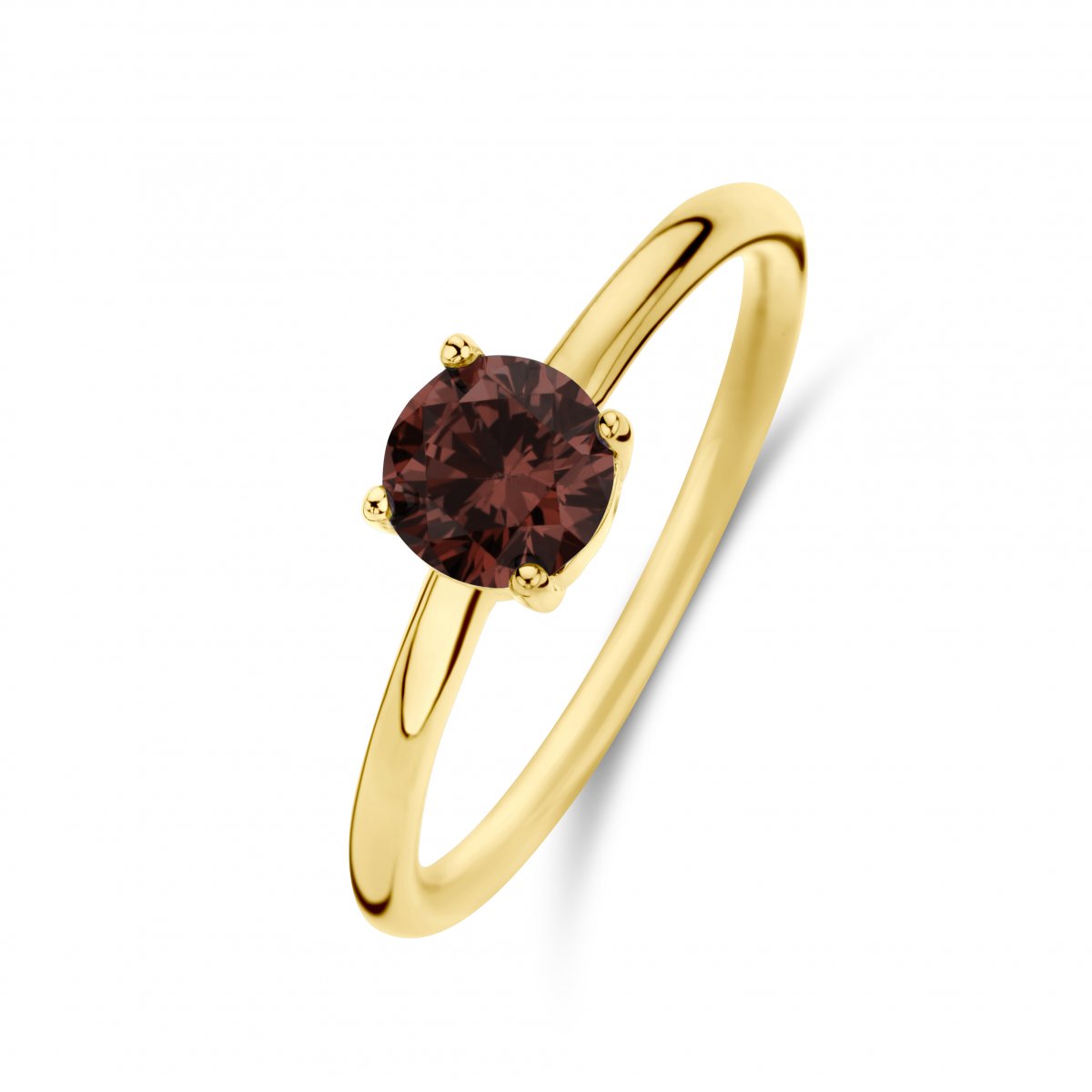 Pozlátený prsteň NEW BLING vyrobený zo striebra, zdobený bordovým zirkónom, sa dokonale hodí na každú príležitosť. Veľkosť zirkónu je 0,6 cm.