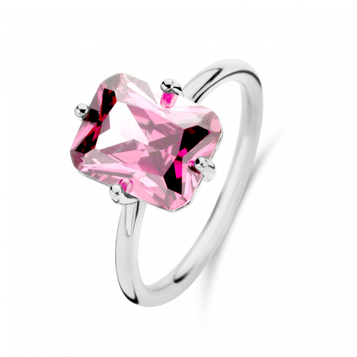 Dámsky prsteň NEW BLING vyrobený zo striebra zdobený ružovým kryštálom. Perfektný tvar prsteňa, ktorý sa hodí na každú príležitosť, alebo do práce. Veľmi vhodné na oživenie jednoduchého outfitu. Veľkosť kameňa je 0,8 x 1 cm.